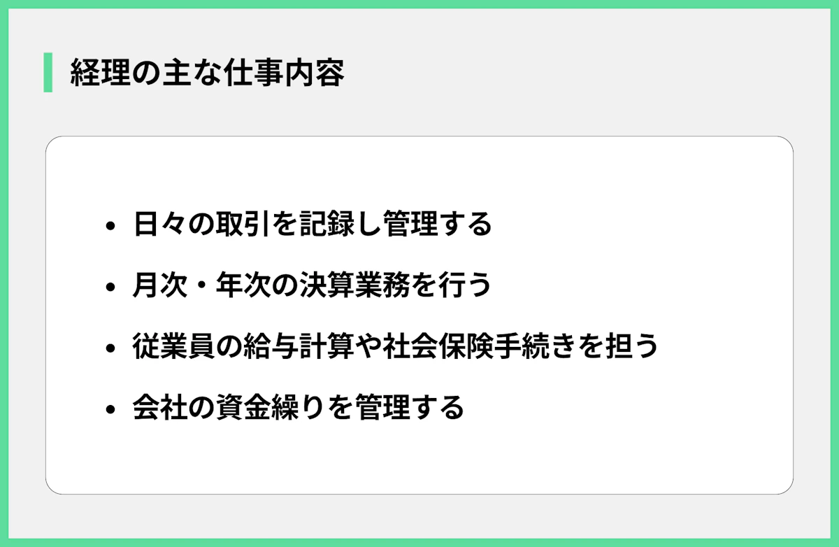 - 経理の具体的な仕事内容