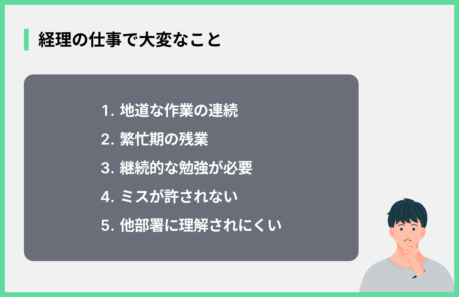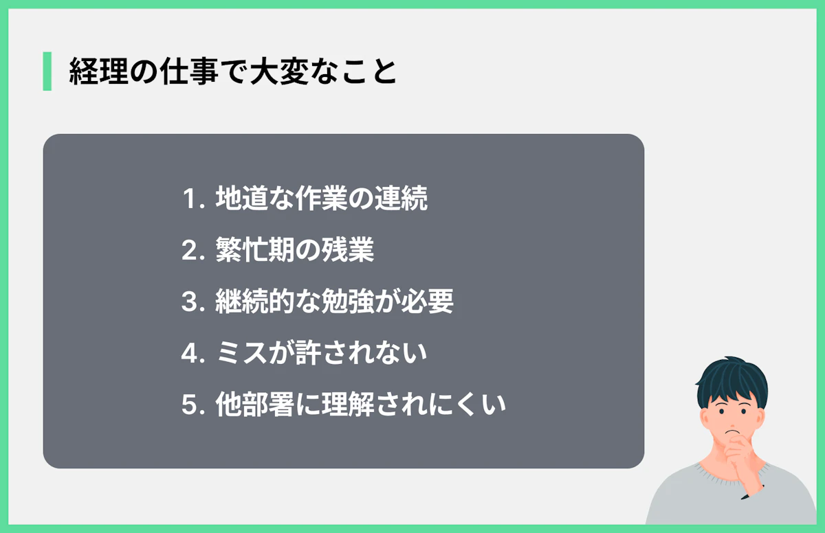 たくさんのメリットがある一方で、経理の仕事には大変な側面もあります。良い面と悪い面の両方を理解しておくことが大切です。デメリットとしては、以下の点が考えられます。