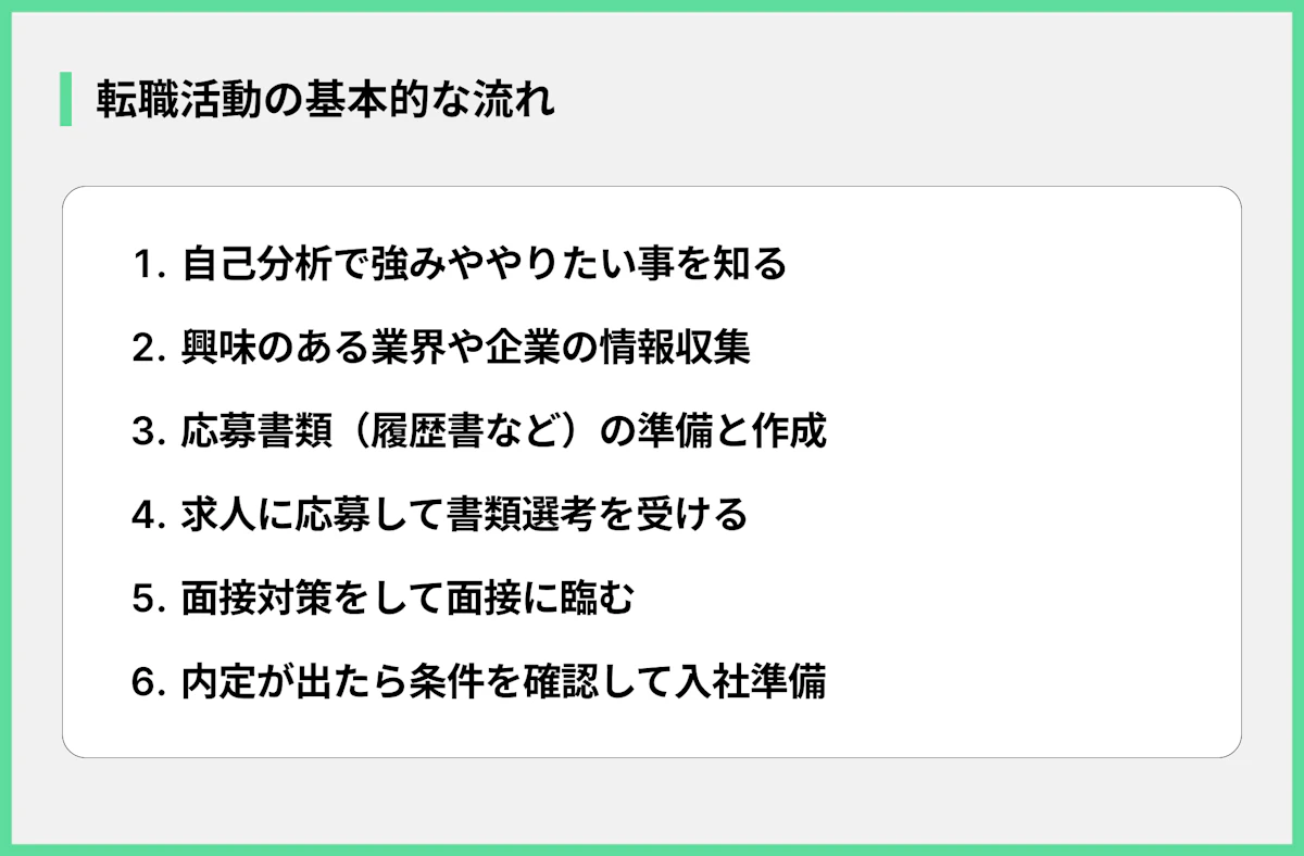 転職を決意したら、後悔のない選択をするために、計画的に行動することが大切です。ここでは、転職活動を成功させるための具体的なステップを紹介します。