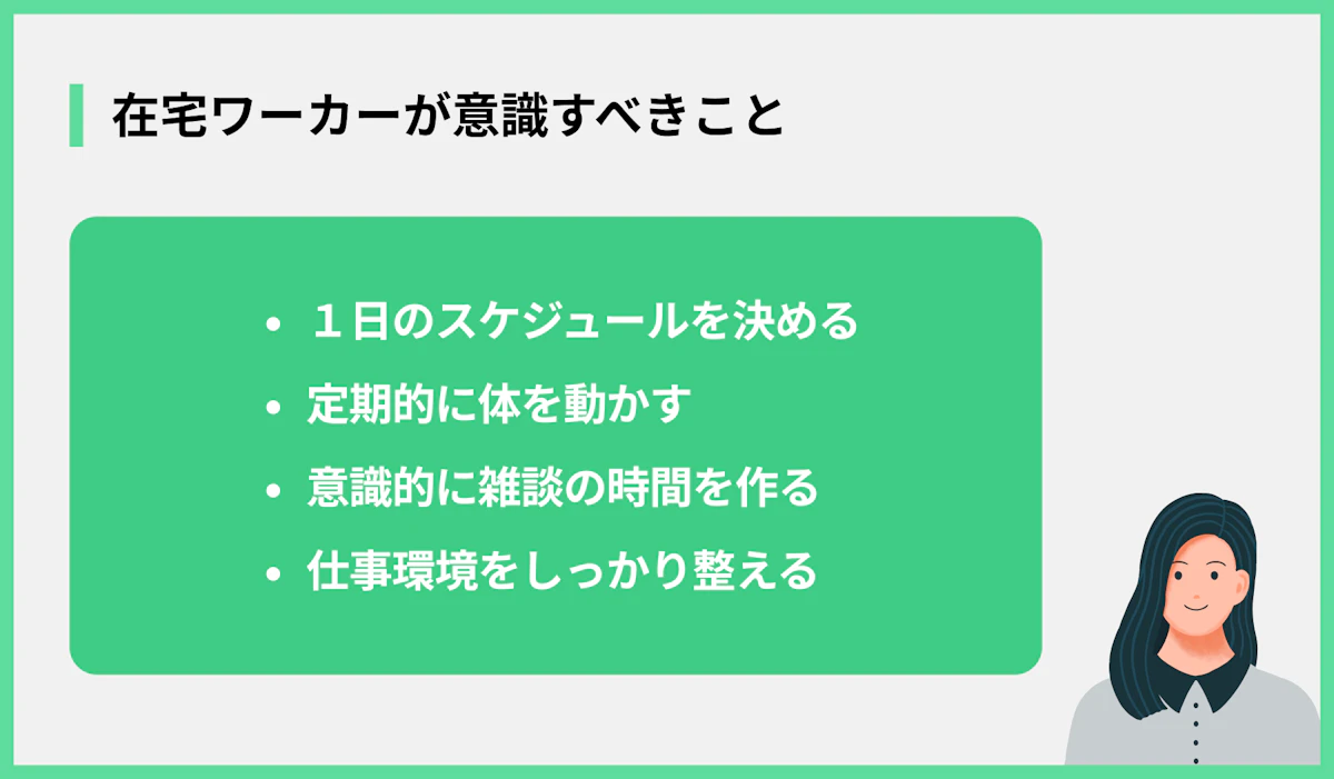 「ずるい」と思われがちな在宅勤務ですが、実は楽なことばかりではありません。在宅で働くからこその大変さもあります。ここでは、あまり知られていないデメリットについて、以下の項目で解説します。