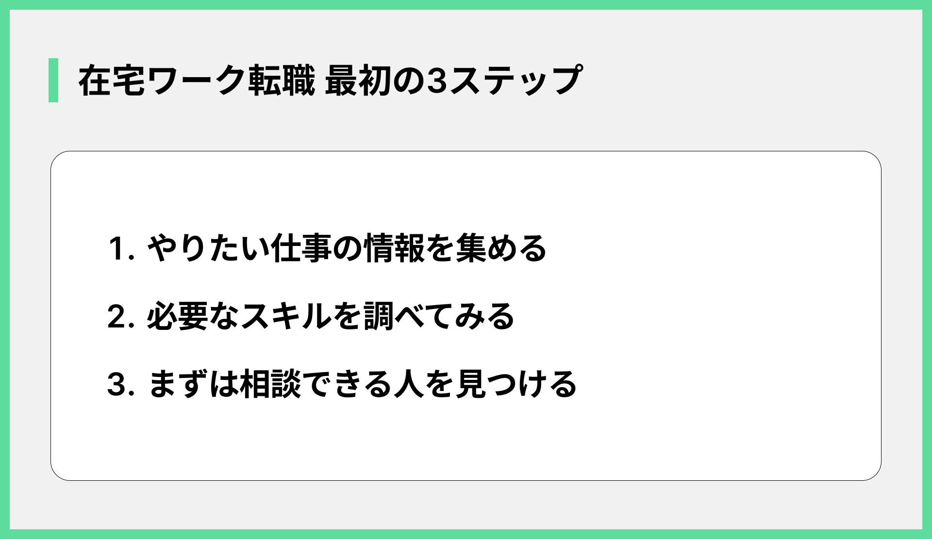在宅勤務という働き方を実現するためには、具体的な行動を起こすことが不可欠です。今の不満をバネに、転職成功へのステップを進んでいきましょう。ポイントは以下の通りです。