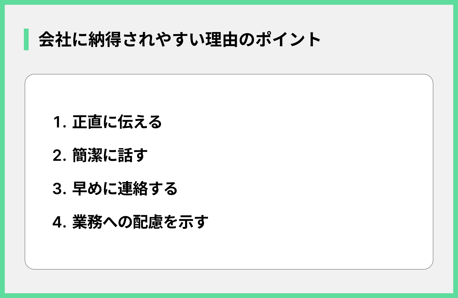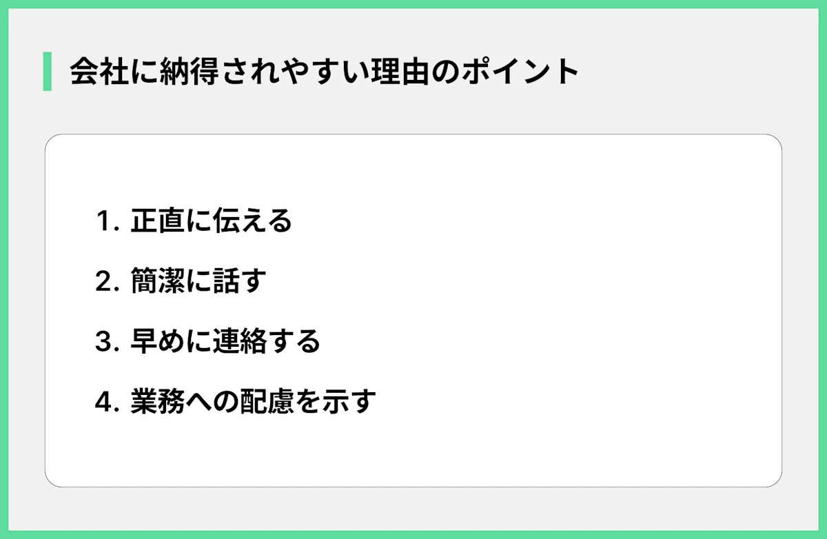 - 当日に在宅勤務を伝える際の納得されやすい理由