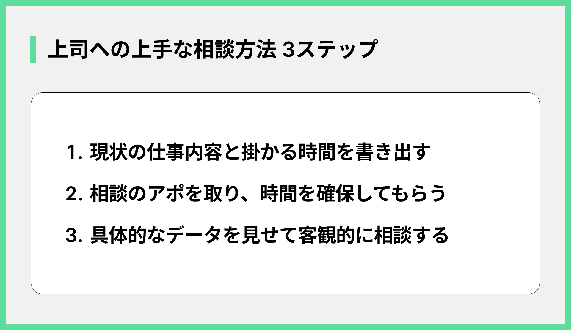 - 自分の業務内容と時間を正直に伝える