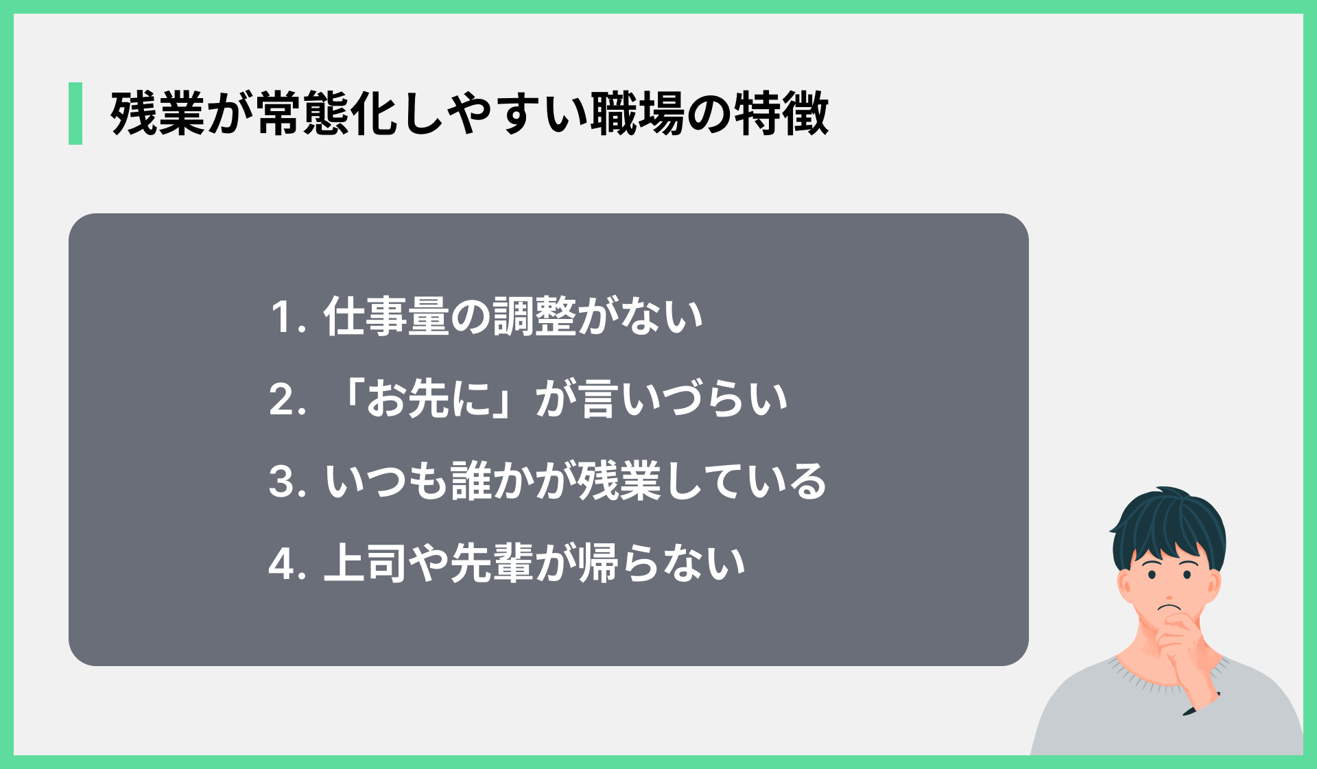 - 残業を減らすための具体的な対処法