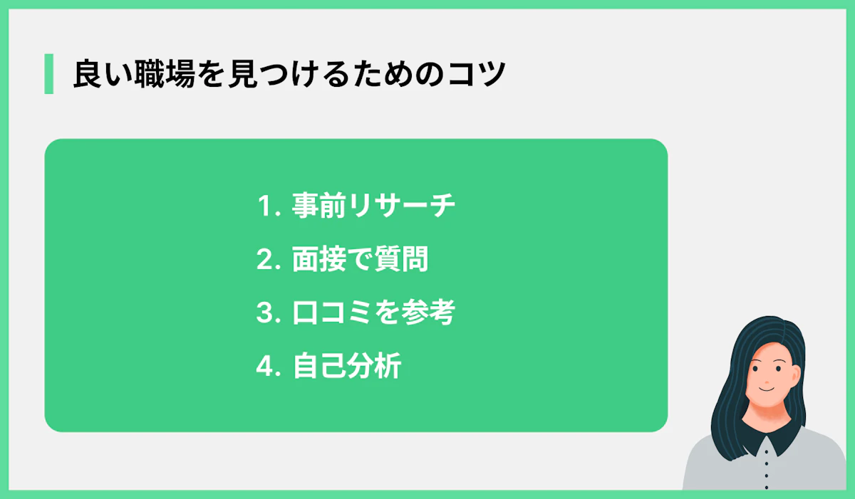 転職を決意したら、次の職場では同じ失敗を繰り返したくないですよね。自分に合った、人間関係の良い職場を見つけるためには、いくつかコツがあります。