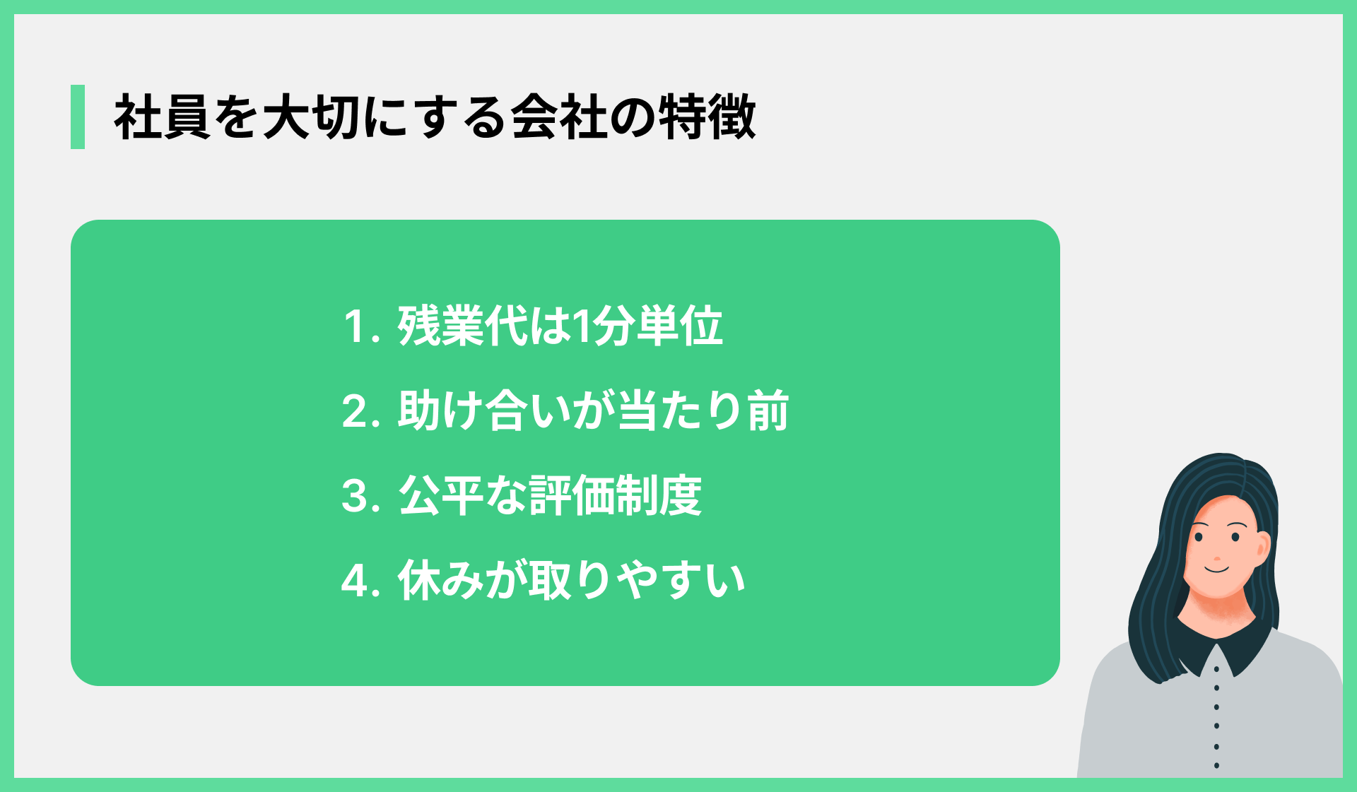 もし転職を考えるなら、次は心から安心して働ける場所を選びたいものです。本当の意味で「思いやり」のある職場には、従業員を大切にする具体的な仕組みや文化が根付いています。ここでは、そんな理想的な職場の特徴について、以下の項目を紹介します。