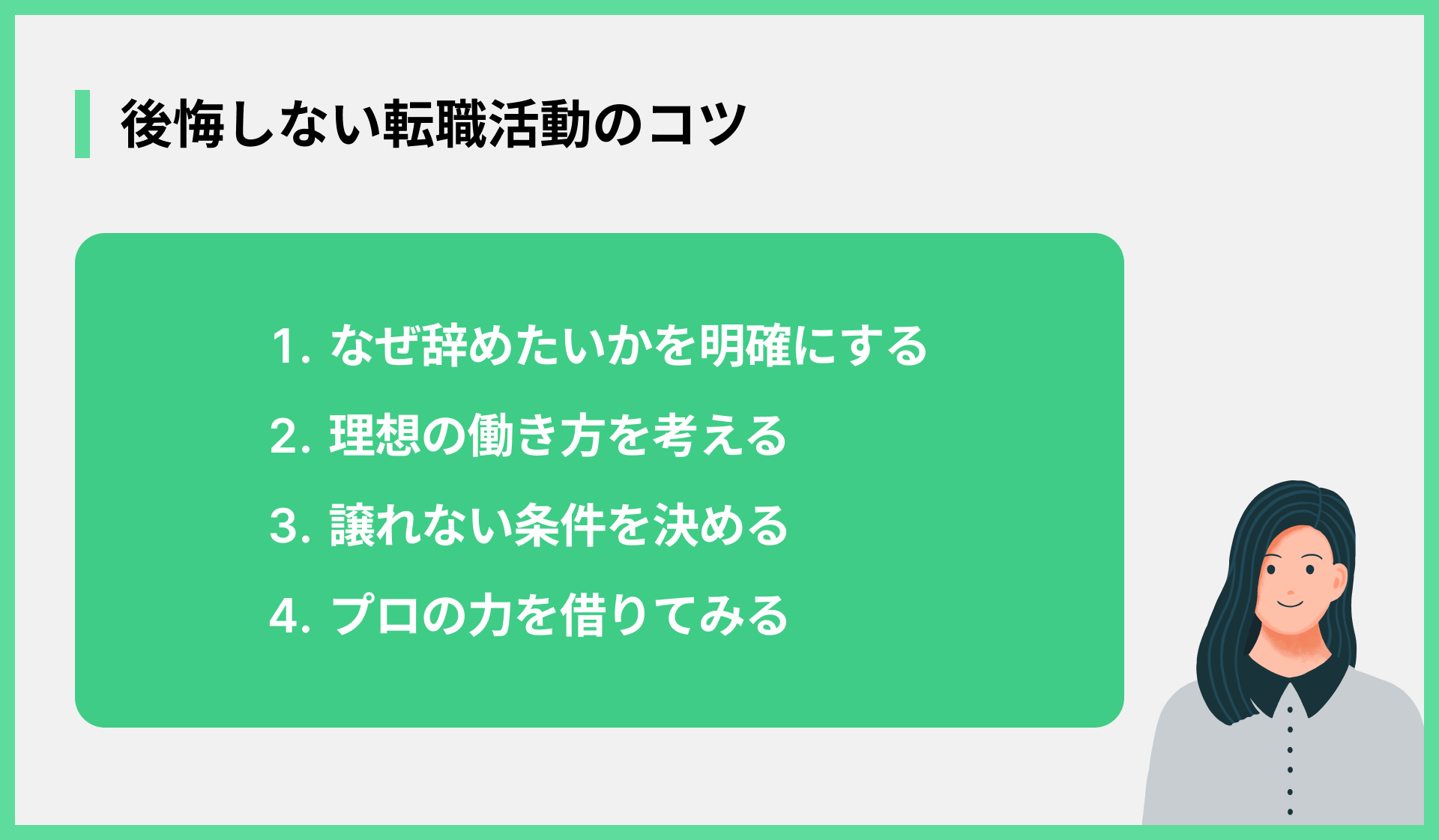 これらのポイントを押さえて、後悔のない転職活動を進めましょう。