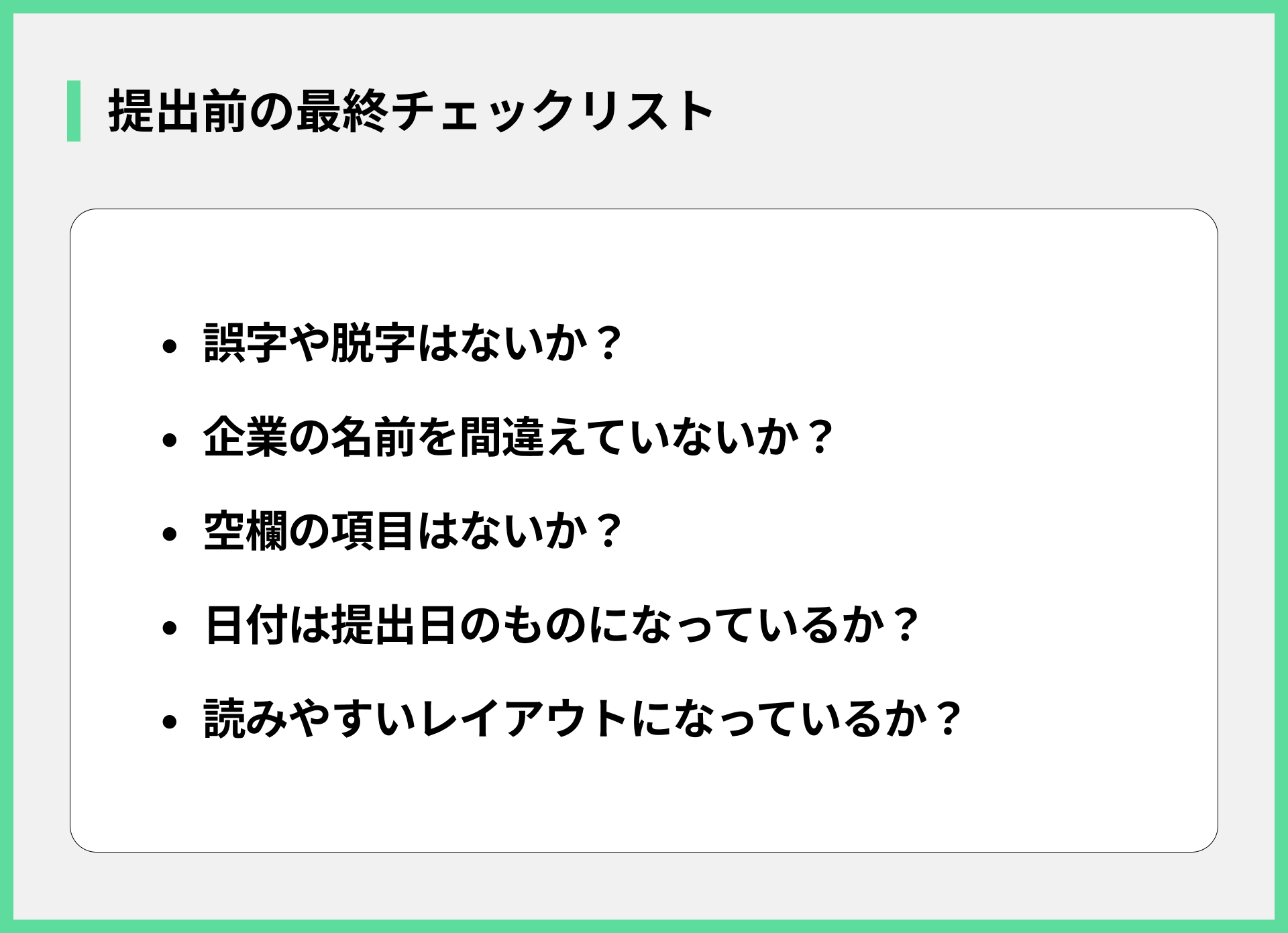 - 誤字脱字がないか何度も確認する