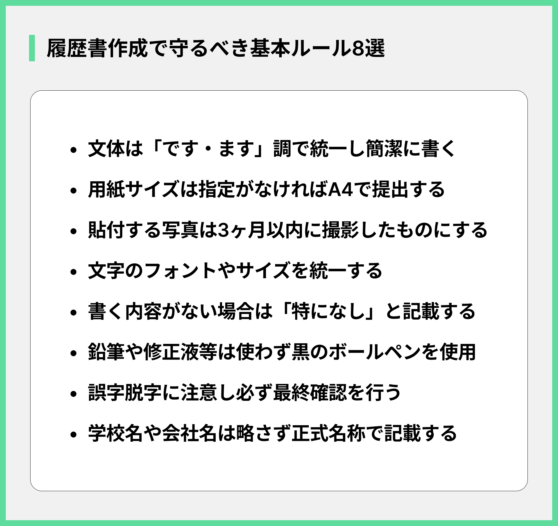 履歴書は、あなたの経歴を企業に伝えるための「公的な書類」です。そのため、記載する情報がすべて正確であることは、社会人としての信頼性を示す第一歩となります。氏名、住所、学歴、職歴などの基本情報はもちろん、日付の記入ミスや和暦・西暦の混在など、細かい点にも注意を払いましょう。誤字脱字が多い、情報が不正確であるといった状態は、採用担当者に「注意力が散漫」「仕事も雑かもしれない」というマイナスの印象を与えかねません。逆に、細部まで完璧に仕上げられた履歴書は、それだけで「丁寧な仕事ができる人材」というポジティブな評価に繋がります。提出前には必ず複数回の見直しを行い、正確性を期すように心がけてください。