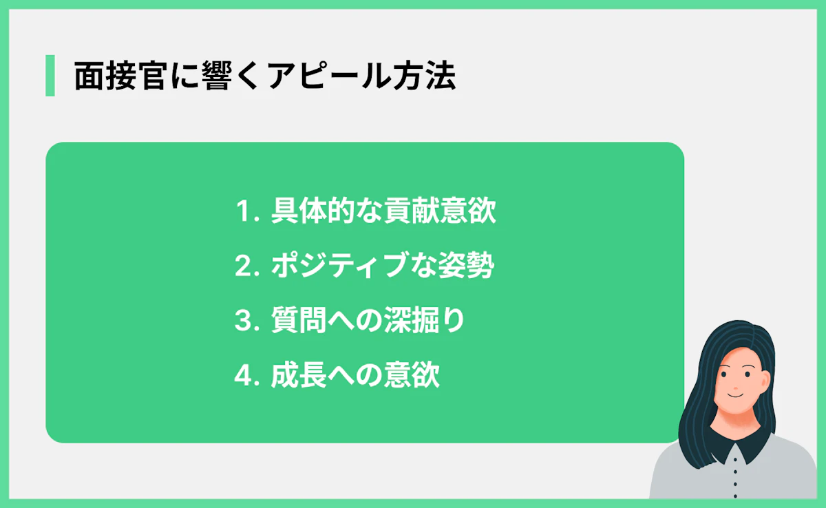 面接では、資格を持っていることだけでなく、入社後にどのように貢献したいかという意欲を具体的に伝えることが大切です。企業は、自社に貢献してくれる人材を求めています。例えば、「簿記の知識を活かして、経理業務の効率化を提案したいです」といった具体的な貢献イメージを伝えることで、企業は応募者の入社後の活躍を想像しやすくなります。また、入社後にさらにどのようなスキルを身につけていきたいか、どのようなキャリアプランを描いているかなどを話すことで、向上心や長期的な視点を持っていることをアピールできます。質問に対しても、単に答えるだけでなく、自分の言葉で具体的なエピソードを交えながら話すことで、より印象に残る面接になるでしょう。
