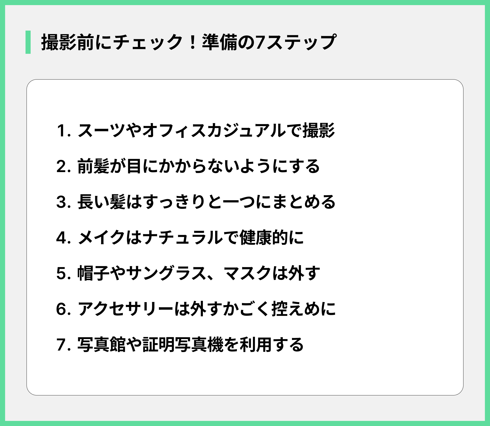 【撮影前の準備編】履歴書の写真を良く仕上げるポイント