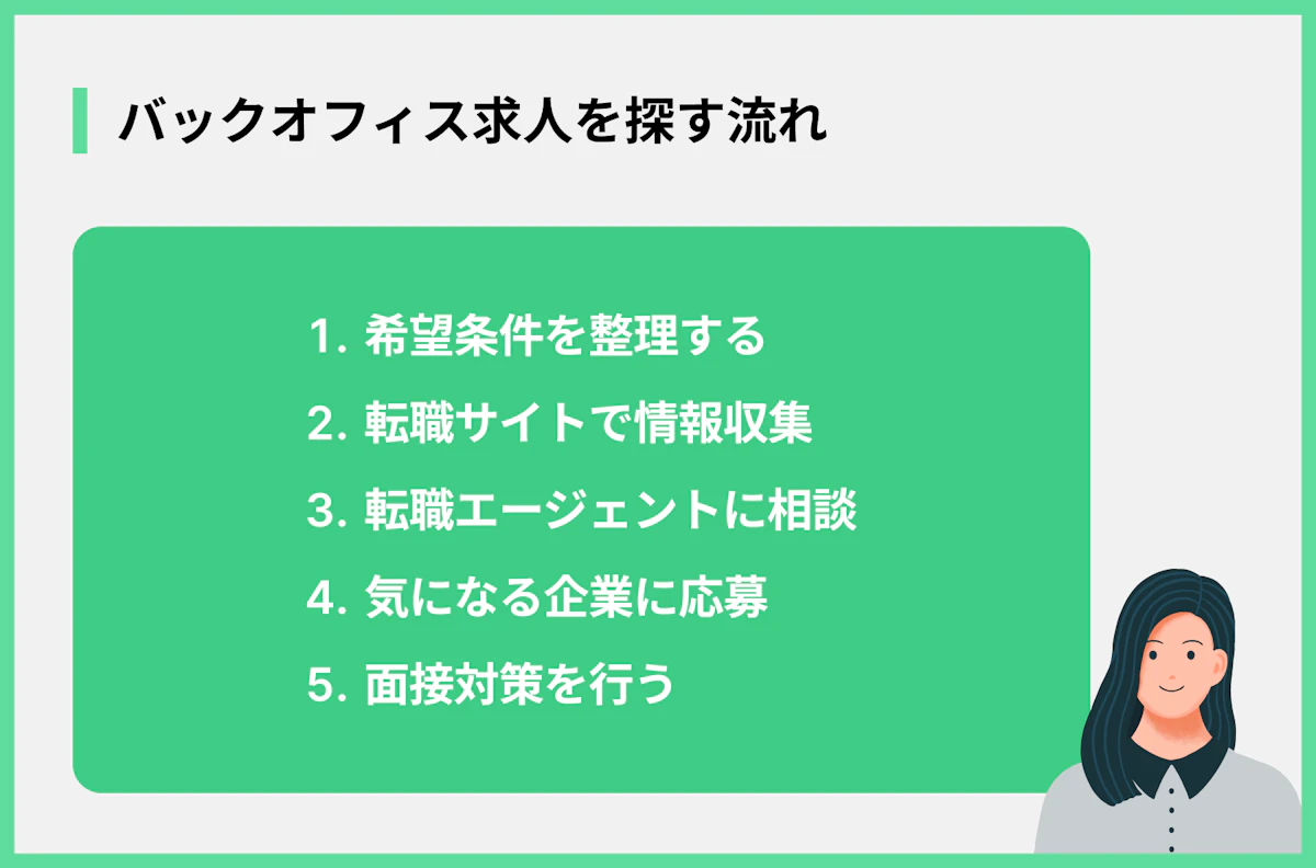 バックオフィスの求人を探す際には、いくつかのコツを知っておくと効率的です。自分に合った求人を見つけるために、以下のポイントを参考にしてください。バックオフィスの求人を見つけるコツは以下の通りです。