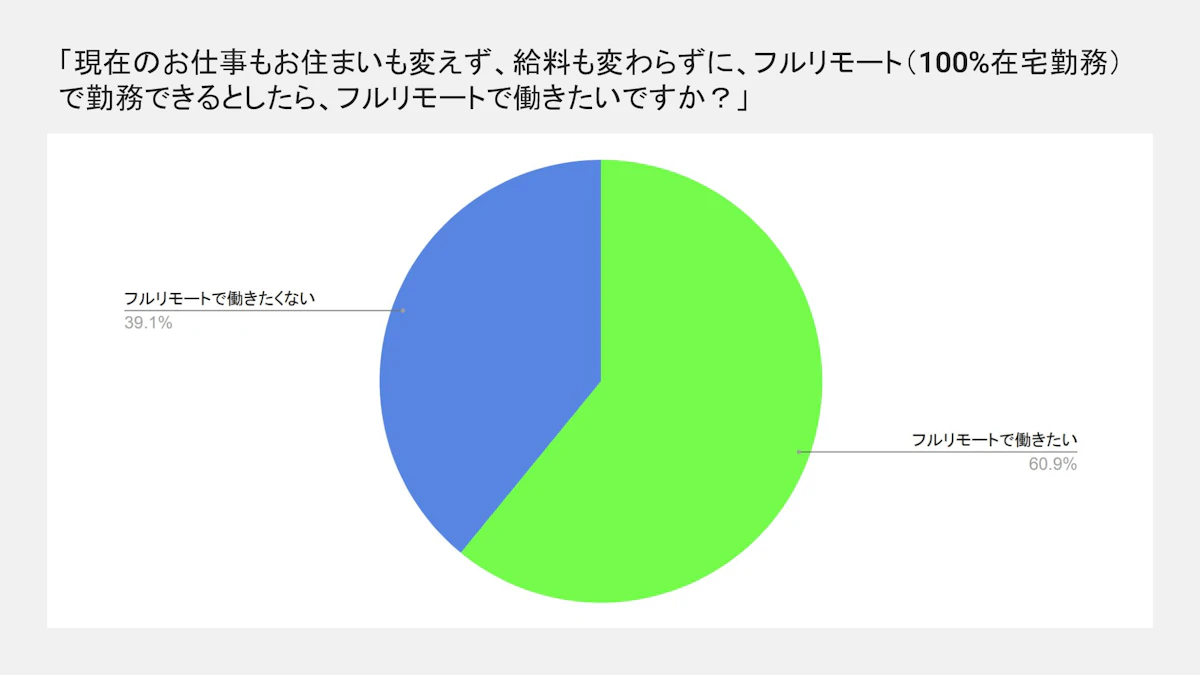 参考(※1):「フルリモート勤務の希望を大調査。フルリモート勤務なら、給与どれくらい下がっても許容できる? | 株式会社LASSICのプレスリリース」(データ参照日:2024/12/17)