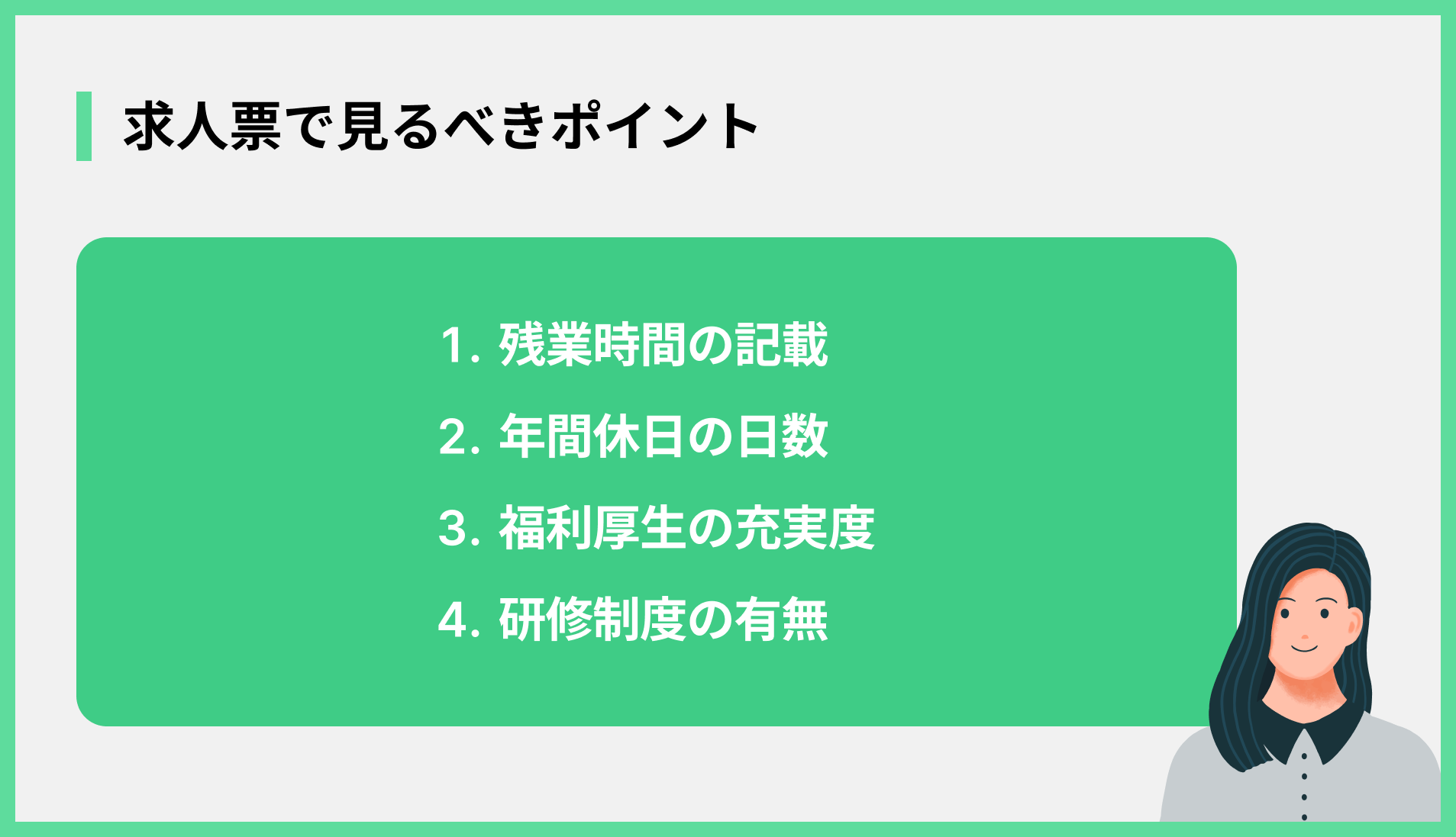 もし転職を決意した場合、同じアパレル業界でも残業が少ない企業を選ぶことが重要です。以下の4つのポイントに注目して、企業を見極めましょう。