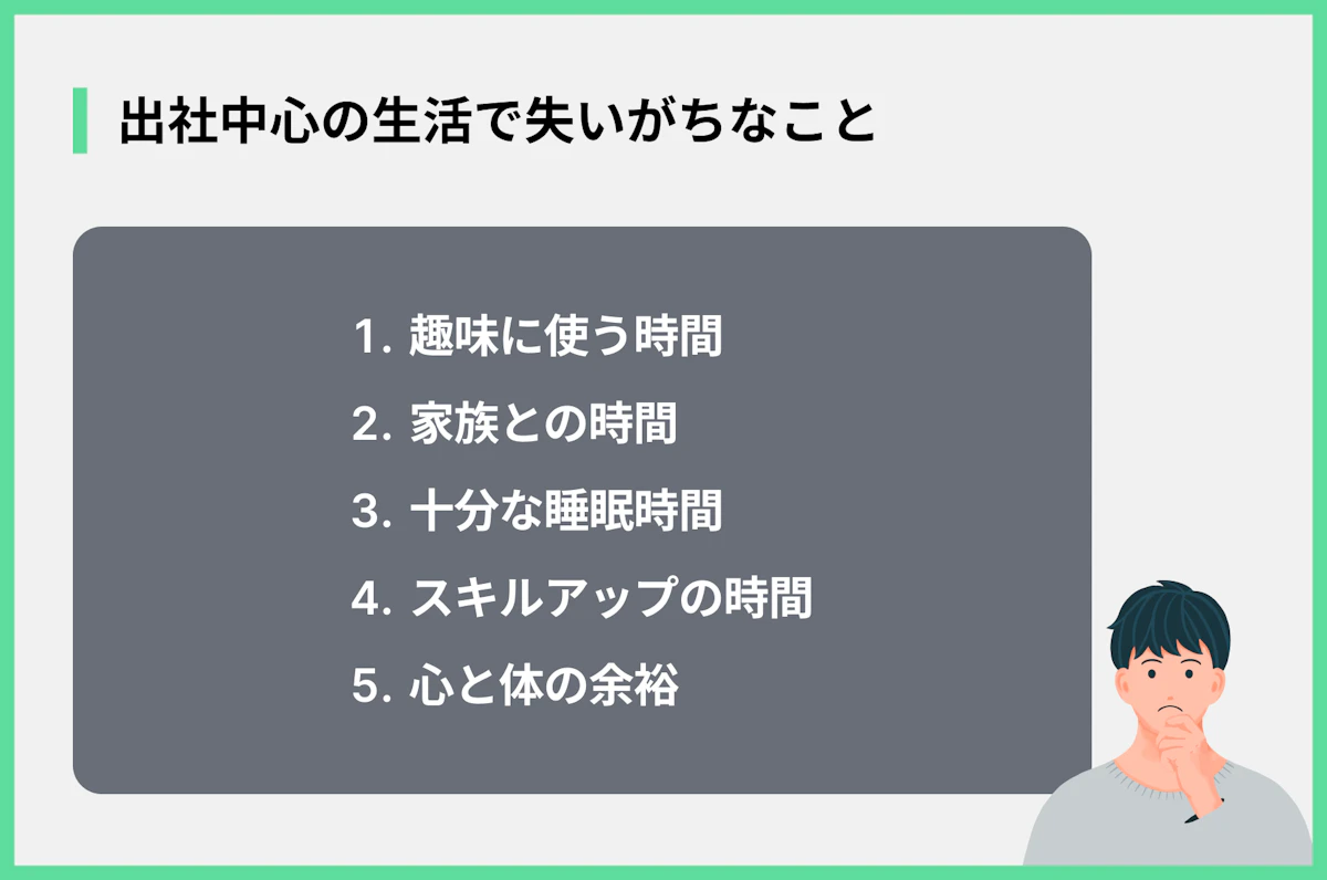 - 通勤でプライベートの時間が削られる