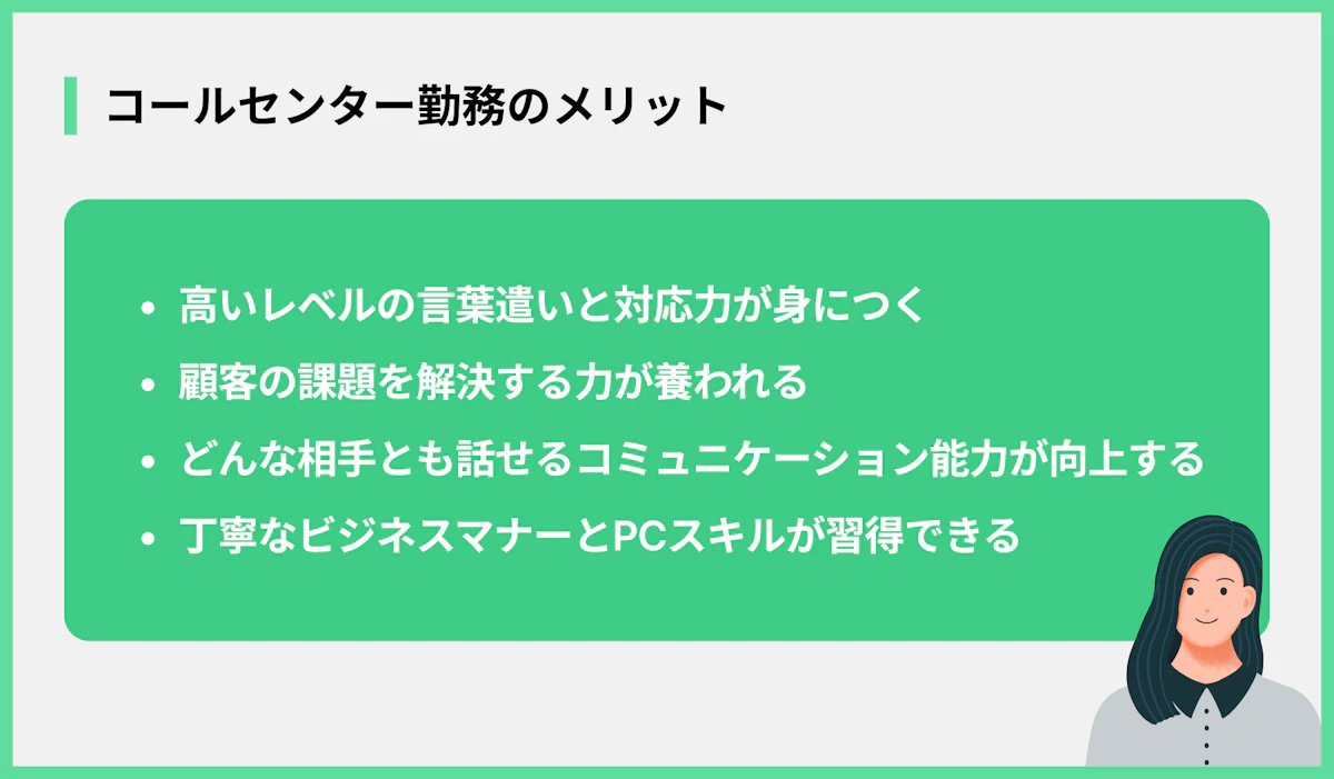大変なイメージがある一方で、新卒でコールセンターを経験することには、将来のキャリアに繋がる大きなメリットもあります。具体的には、以下の点が挙げられます。