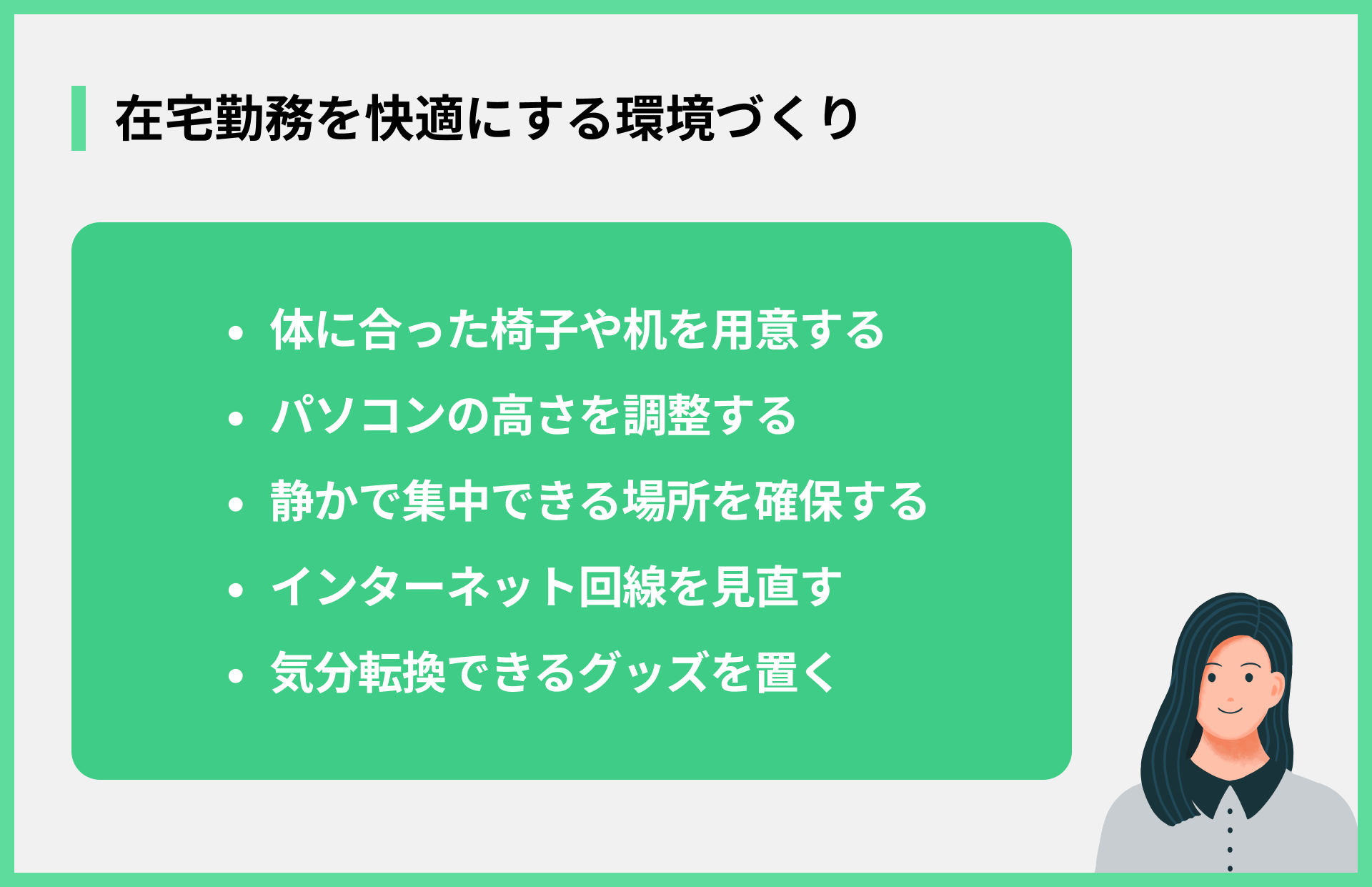 - 仕事の環境を自分で整える必要がある