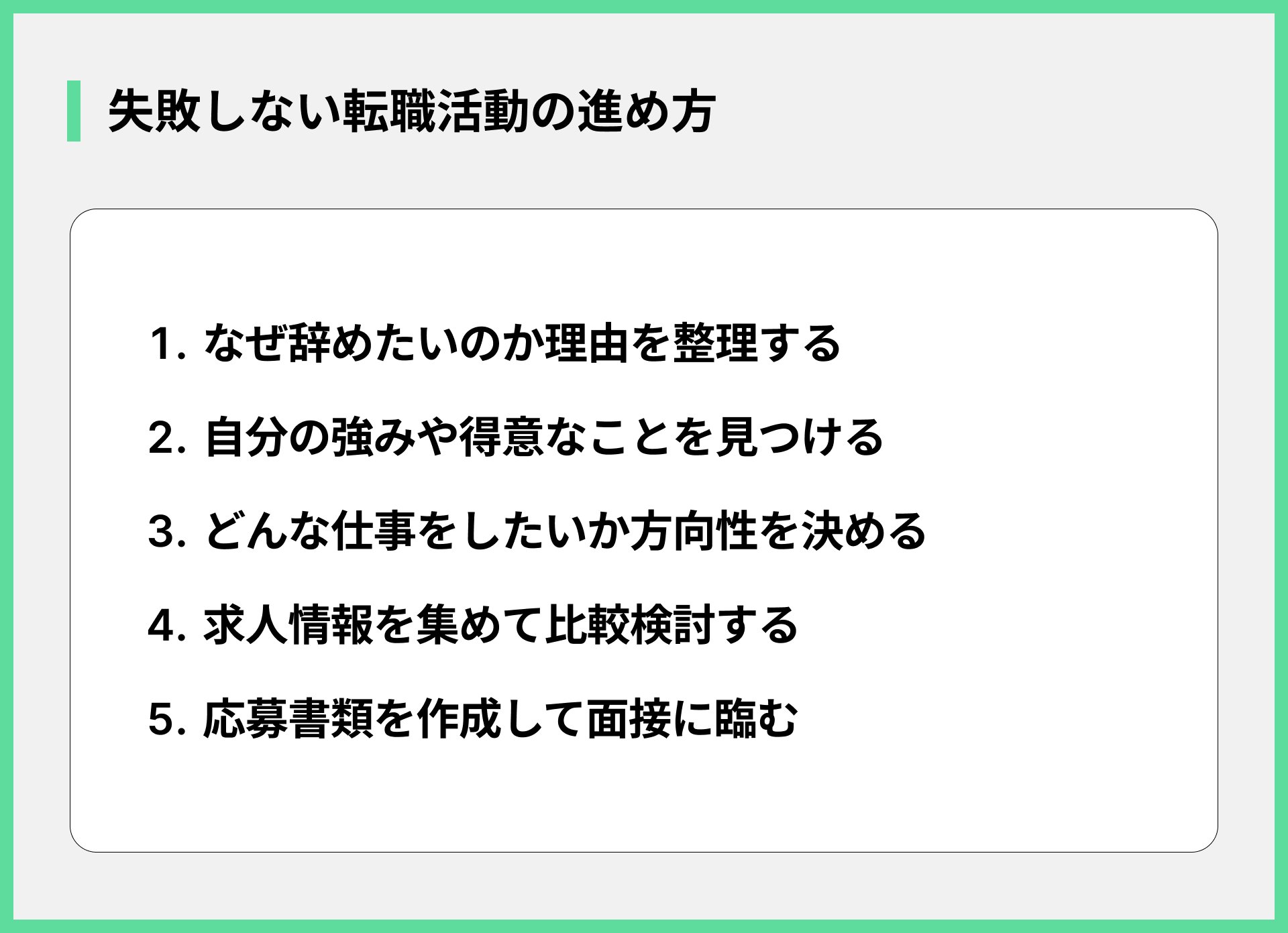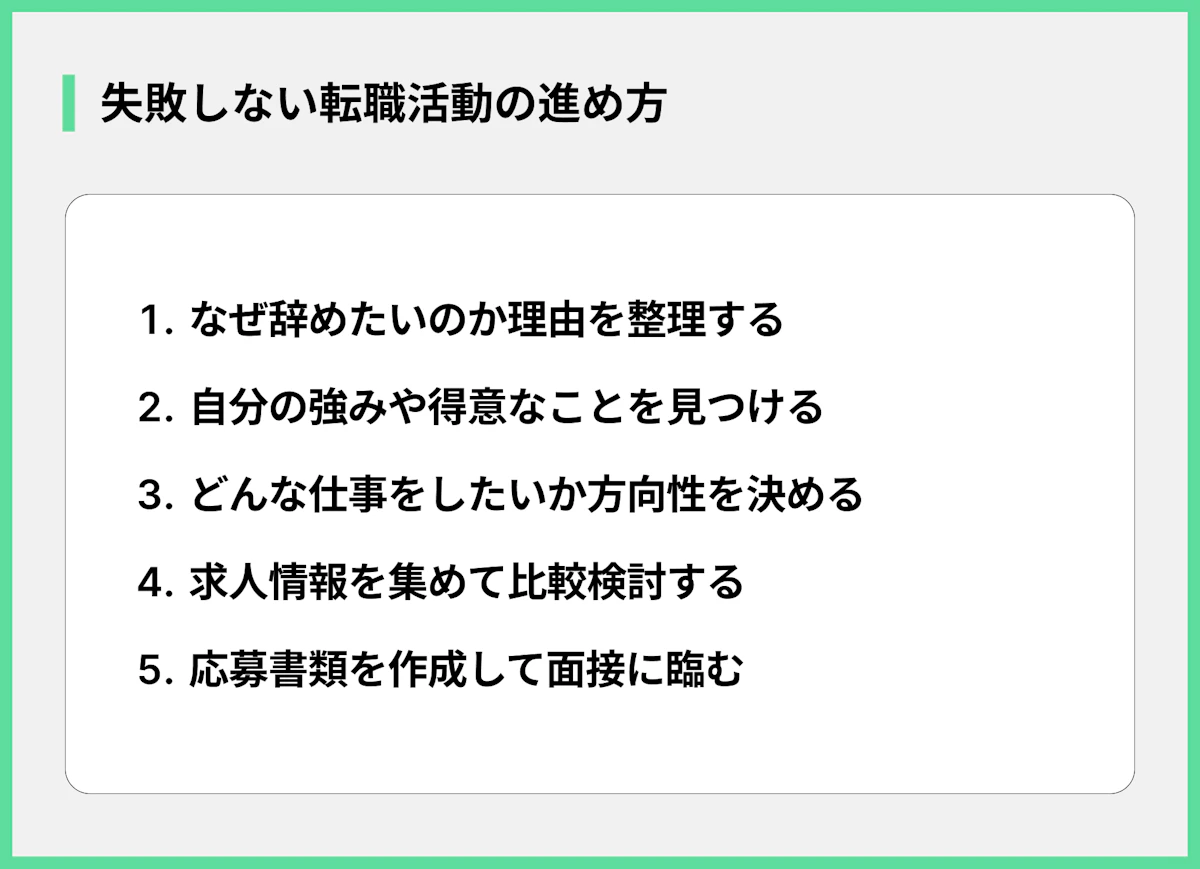 色々な対処法を試しても、どうしても「きつい」状況が変わらないのであれば、無理に続ける必要はありません。転職を考えるのも、自分を守るための大切な選択肢です。転職を検討する際のポイントは以下の通りです。